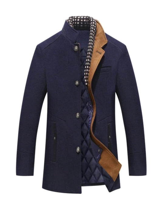 Men's Winter Jacket with Blue Diamond Pattern and Zip Closure
