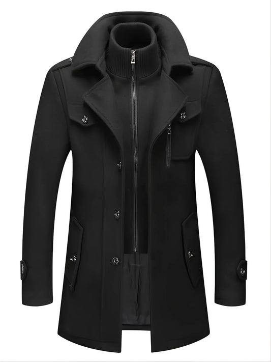 Elegant Black Wool Blend Overcoat for Men with Buttoned Cuffs