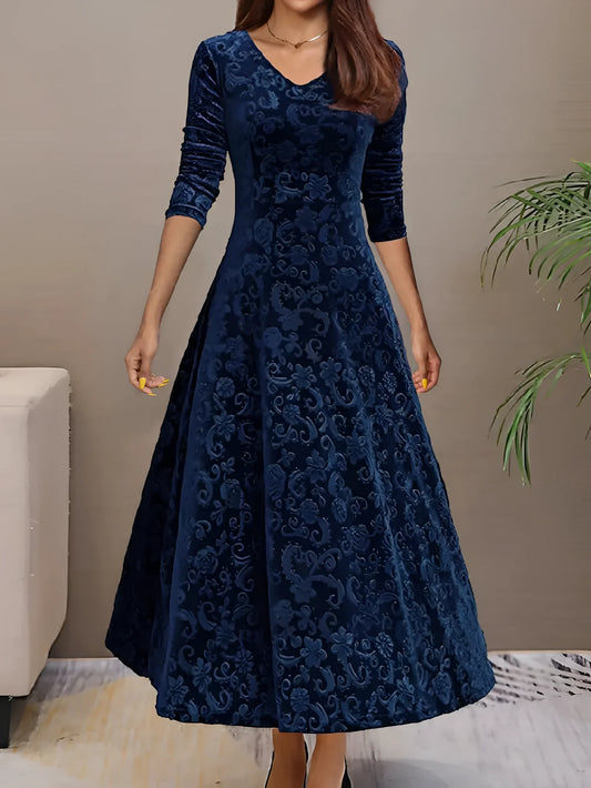 A-Line Purple Velvet Floral Gown: Elegant Winter Party Dress