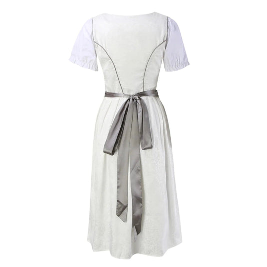 A-line Midi Dress with Puff Sleeves: Elegant White Floral Lace for Women