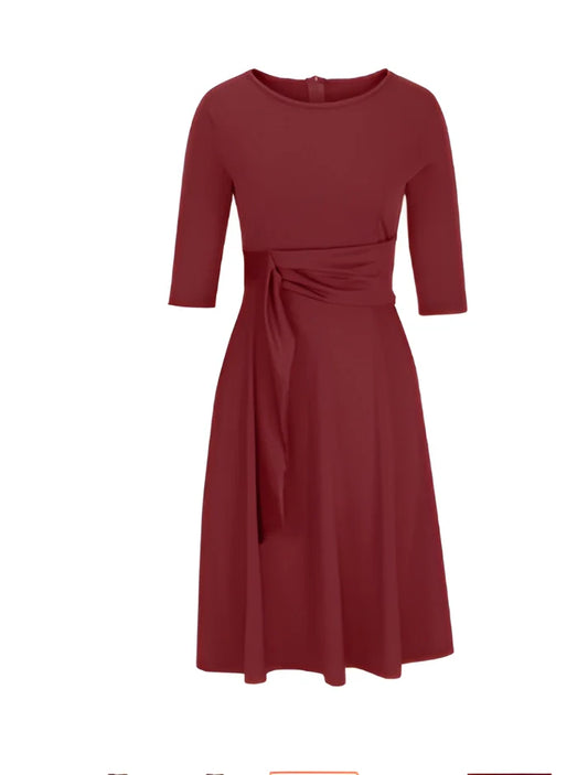 A-line Midi Maroon Dress, Twist Front and Boat Neck, for the Office