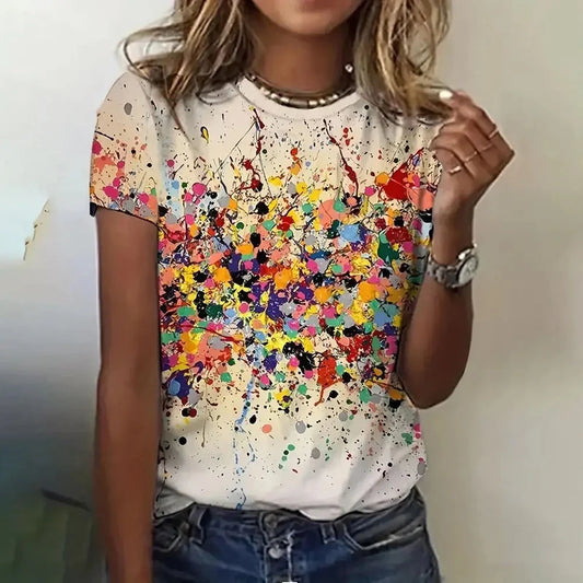 Abstract Paint Splatter Print Casual T-Shirt for Women