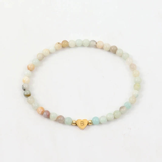 Personalized Heart Charm Bracelet with Custom Initial, Pearls, and Gemstone Beads