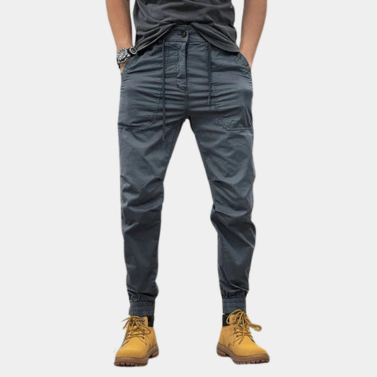 Men's Grey Slim Fit Cargo Trousers: Streetwear Utility Pants