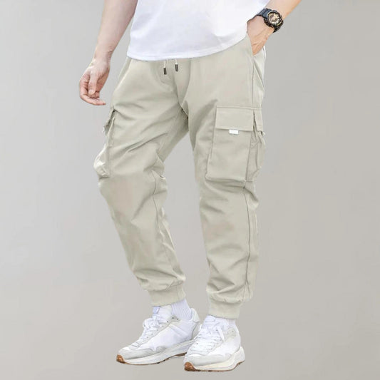 Men's Beige Slim-Fit Cargo Pants: Durable, Multi-Pocket Outdoor Trousers