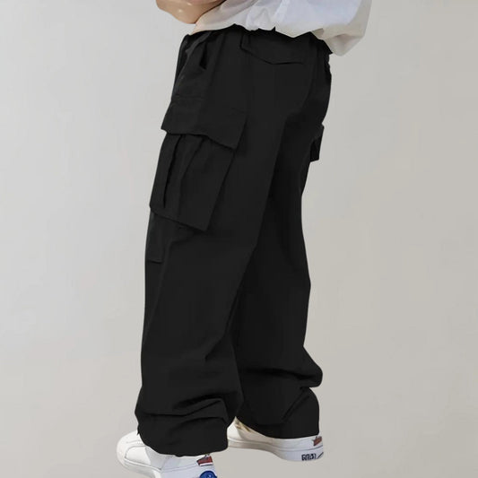 Black Men's Oversized Cargo Pants with Multiple Pockets, Urban Style