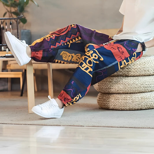 Men's Relaxed Bohemian Harem Pants with Artistic Print – Casual Street Style