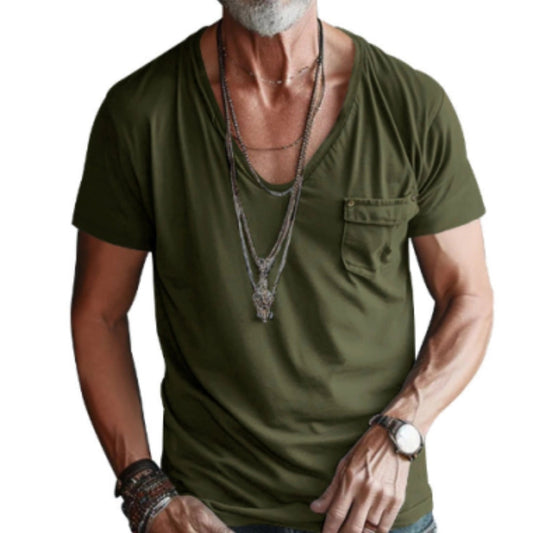 Stylish Black Slim-Fit V-Neck T-Shirt for Men with Pocket