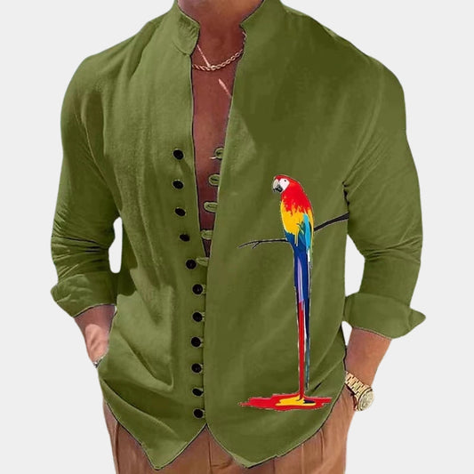 Casual Shirt for Men, Black with Parrot Graphic