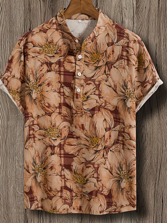 Short Sleeve Button-Up Shirt for Men, Tropical Floral Print