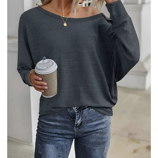 Women's Casual Black Off-the-Shoulder Blouse with Button Cuffs