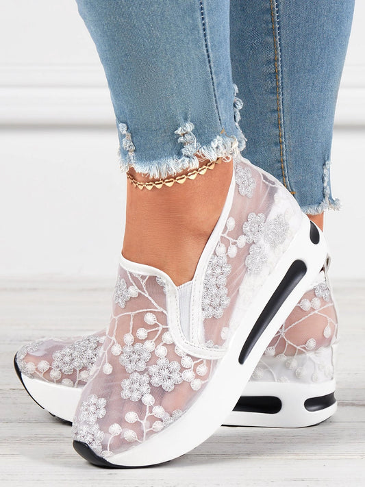 Women's Breathable Floral Lace Slip-On Sneakers