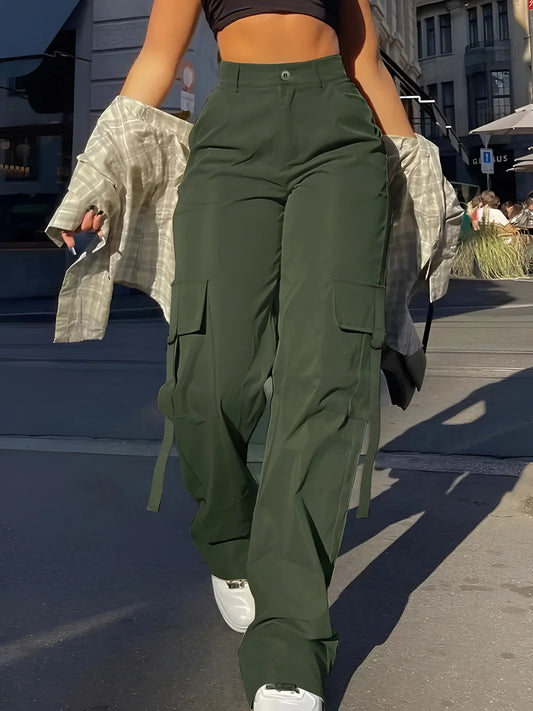 Women's Black Cargo Pants: Wide Leg, High Waisted, Urban Style