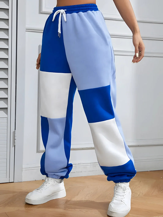 Women's High-Waisted Tricolor Joggers with Color Blocking