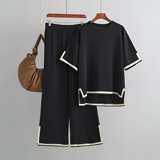 Women's Ivory Ribbed Knit Sweater and Pants Set in Monochrome
