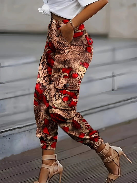 Stylish High-Waisted Snake Print Pants for Women